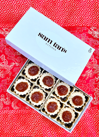 Handmade individually from scratch, each tart is a true labor of love. A generous golden ball of luscious slow-cooked pineapple jam, infused with Sam's special blend of fragrant spices, sits nestled atop an all-butter pastry base that melts in your mouth. Sweet but not-too-sweet, a touch tangy - one is never enough!